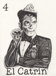I asked Mario if he could do a commission piece for anybody who desired a personalized version of the La Dama o El Catrin, or of any other Loteria character, and he said yes! I am actually thinking about it.