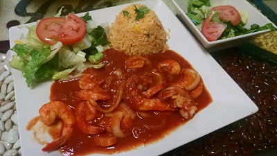 This time I’m posting about Sabores del Golfo (Flavors of the Gulf) because I’ve been there several times and it has never disappointed me. Their staff is very friendly, prices are reasonable and the menu is better than I expected. Pictured here are “shrimp diablo” served with rice and salad for $7.99 – All patrons get a small bowl of seafood soup before the meal plus the traditional chips and salsa.