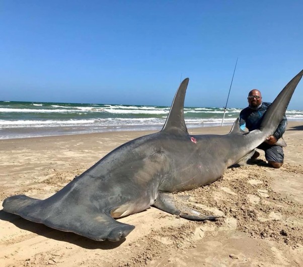 El pasado fin de semana en la Isla del Padre, en Estados Unidos, fue caputado un tiburón martillo de unos 4.3 metros de largo.