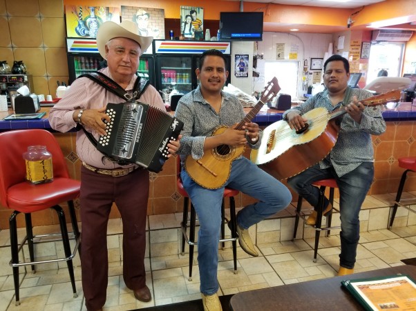La Vida Valle está llena de color y sabor. Disfrutar de una comida “Tex-Mex” acompañada de música en vivo no es nada inusual. Esta mañana, mi esposo y yo visitamos el restaurante “El Rancho” en la ciudad de Harlingen, Texas y tuvimos la fortuna de escuchar a tres integrantes del Mariachi Real del Valle. Christian, Pedro y Jordi de McAllen, Texas nos deleitaron con su muy buena musica. Ellos me comentan que recorren varios restaurantes en todo el Valle para la hora del desayuno y la comida. En las tardes y noches hacen su recorrido con todo el Mariachi completo que consiste de 6 integrantes. Christian y Jordi son dos talentosos hermanos.
