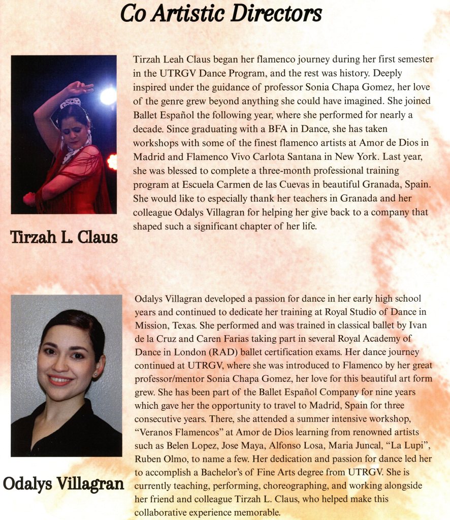 Odalys Villagran and Tirzah L. Claus put on a magnificent dance performance to honor their late artistic director Sonia Chapa Gomez. On a cold, crisp night, my husband, some friends, and I drove to UTRGV in Edinburg, Texas, for a presentation by the university’s Ballet Español Company.